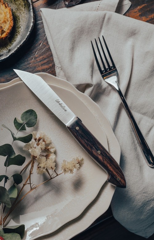 La gamme Artzaina s'étoffe pour vous accompagner à table. Digne descendant du Makila dont il reprend le profil effilé, ce couteau est fait de lignes tendues de métal ciselé. Il se décline en couteau à fromage, à beurre, à dessert et à pain dans une large palette de matériaux nobles et précieux pour vous offrir une multitude de choix. Sa jolie denture réalisée à la main viendra à bout de tous les pains !
